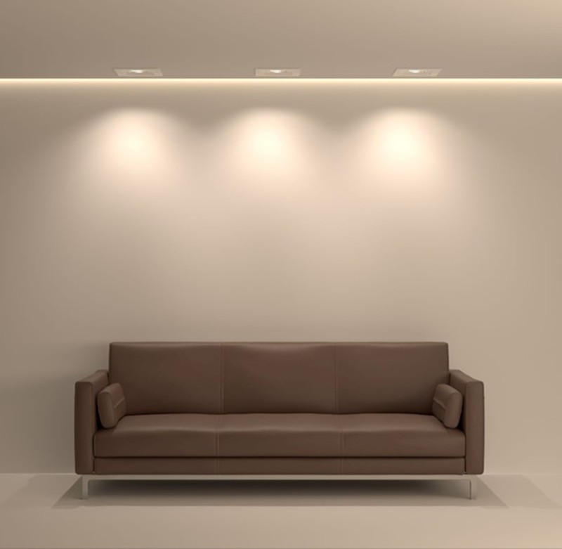 ห้องนั่งเล่นเป็นพื้นที่ที่สมาชิกในบ้านใช้บ่อย การเลือกใช้ไฟดาวน์ไลท์ติดฝ้าแสงวอร์มไวท์ (Warm White) จะช่วยสร้างบรรยากาศอบอุ่นและสบายตา หากต้องการเพิ่มมิติให้ห้องมีความลึกมากขึ้น อาจติดไฟดาวน์ไลท์รอบเพดานร่วมกับไฟซ่อน (Indirect Light) เพื่อให้ดูหรูหราและมีสไตล์