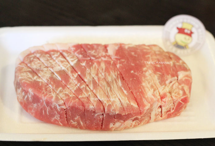 เอาล่ะตามมาชิมกันดีกว่าว่าที่นี่มีเนื้อวัวอะไรที่ชวนนำมาปิ้งย่างกินกันบ้าง เราเลือกสั่งเนื้อเด่นๆ มาชิมกันหลายอย่าง มี เนื้อสันนอกพรีเมียม (ราคาตามน้ำหนัก กก. ละ 1, 200 บาท) เนื้อชนิดนี้เป็นเนื้อปรุงแต่งไขมัน ส่วนสันนอกที่คัดสรรมาเป็รอย่างดี เนื้อเมื่อนำมาปิ้งบนเตาถ่านร้อนๆ กินแล้วสัมผัสได้ถึงเนื้อที่มีคุณภาพ มีความชุ่มฉ่ำของไขมันที่แทรกอยู่ เคี้ยวนุ่มหนึบหนับปาก